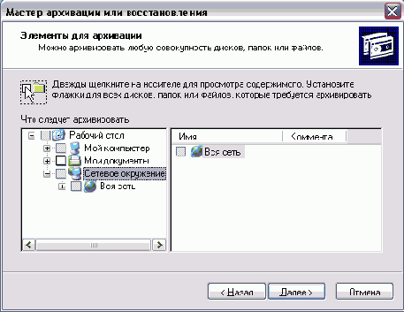 В левой части диалога нужно выбрать один из созданных архивов для восстановления. Дважды щелкнув на элементе списка, вы откроете его содержимое. Возможно, при этом появится диалог, информирующий о необходимости вставки носителя. В правой части с помощью установки флажков можно выбрать файлы и папки для восстановления. После выбора файлов и папок нажмите кнопку Далее (Next), чтобы продолжить работу. Появится заключительный диалог мастера. Нажмите кнопку Готово (Finish), чтобы закрыть диалог и начать восстановление. Процесс восстановления также сопровождается диалогом, иллюстрирующим ход выполнения операции. По окончании восстановления, нажмите кнопку Закрыть (Close), чтобы закрыть диалог. Теперь файлы заменены на те, которые хранились в архиве.